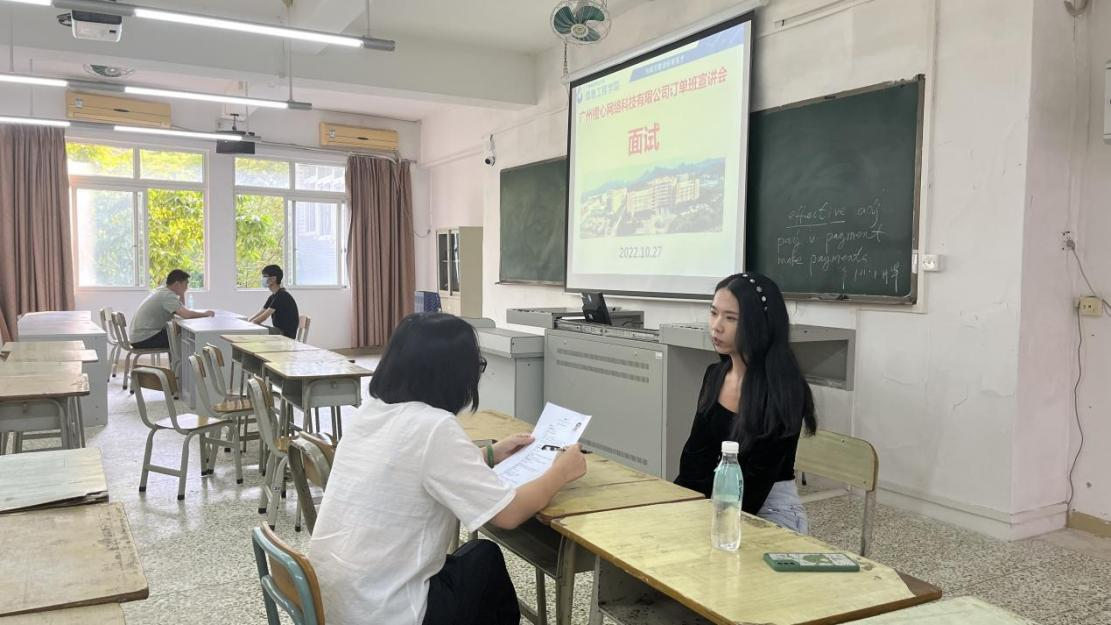 10月27日,广州橙心网络科技有限公司续签总监苏妃妹、人力资源经理郑选静等一行4人在信工财经楼319开展订单班招聘宣讲活动,2020级电子商务专业学生和部分专任教师参加了此次活动。