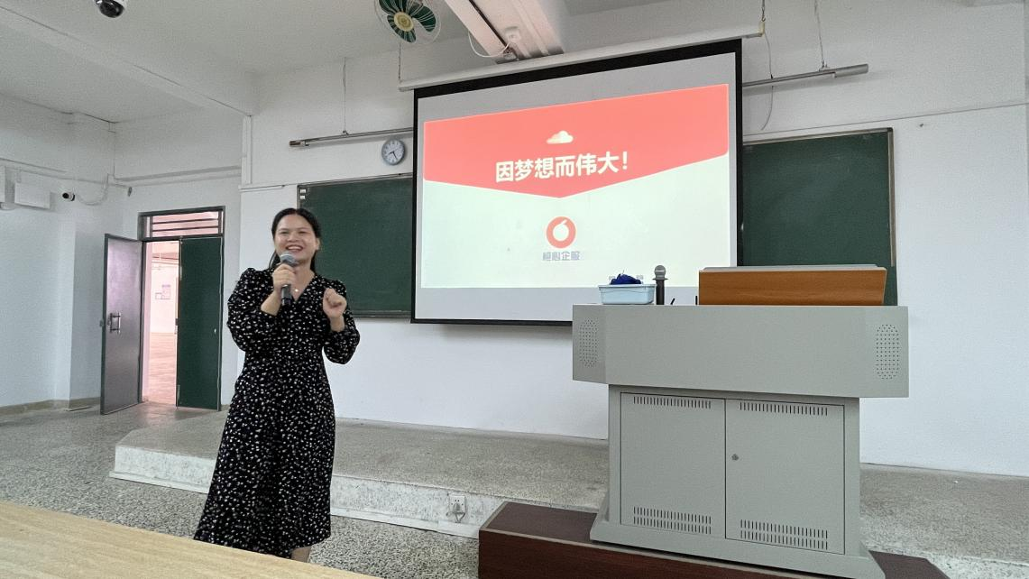 会上,续签资深经理蔡小丽做了职场提升的建议的成功经验分享报告,她通过在校期间的亲身经历和学习收获及在公司良好的企业文化和工作氛围中的成长经历,鼓励师弟师妹们要树立信心,敢于接受挑战,早日实现自己的梦想。蔡小丽是我校2019届电子商务专业毕业生,2018年入职橙心公司,经过了短短3年的努力,现已成为公司管理层重要骨干。