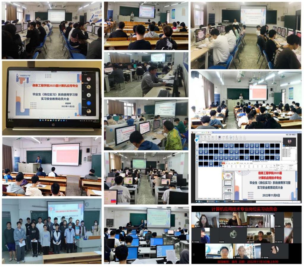 为确保2023届计算机应用技术专业毕业生的岗位实习工作顺利开展,让学生明确实习的目的、意义和要求,进一步加强岗位实习规范,提高学生安全意识,11月初,计算机应用技术专业召开2023届毕业生《岗位实习》系统使用学习暨实习安全教育动员大会。鉴于本届毕业生人数规模较大,大会采取按各岗位实习指导教师分组召开的形式,每位指导教师组织各自所带学生通过现场或线上直播形式举行动员会议。
