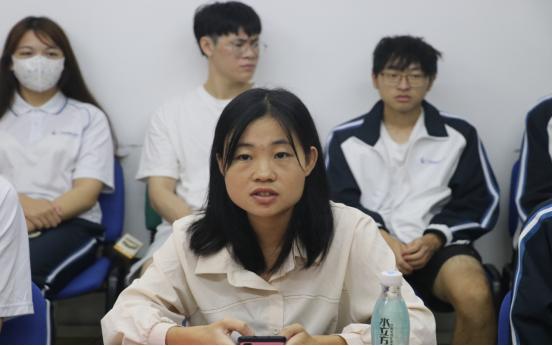 订单班代表王冰茹同学发言。她首先感谢了学校的培养,企业的信任,同时表态决心,作出承诺,珍惜机会,严格自律,做好订单班团队的表率,努力争取早日成为扬海人。