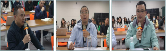 三位评委分别对每位参赛选手“说课”的教态、说课的相关内容等方面作出精准的点评,并提出了针对性和指导性意见。