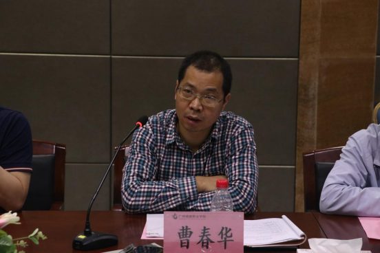 曹春华为参会人员详细介绍了学校在党建工作、教学工作、科创工作、产教融合、技能竞赛和招生就业等工作情况。