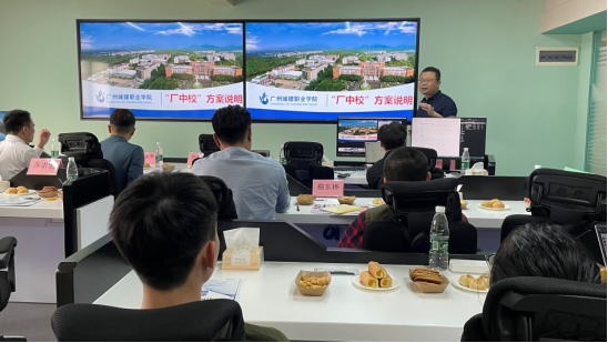 苏崇坚介绍了学校的整体情况,就“厂中校”方案政策依据、模式等内容进行详细介绍,表示公司的人才需求与学院专业设置契合度很高,未来可以通过部分学生提前到岗、学校教师到企业教学等方面继续加深合作。