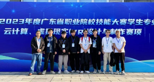4月16日,2022-2023年度广东省职业院校学生专业技能大赛“虚拟现实(VR)设计与制作”赛项在深圳职业技术学院隆重举行,来自全省的86支队伍258名学生参加比赛。我院计算机应用技术教研室方斌和王中州老师指导的两支参赛队伍沉着应对、顽强拼搏,经过4个小时的紧张比拼, 最终代表队1队获得了一等奖(第4名)、代表队2队获得了二等奖,实现该赛项参赛以来年年斩获一等奖的好成绩。
