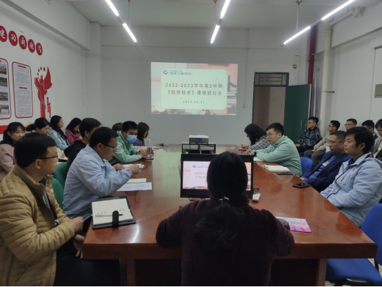 为深化课程建设和教学改革,提升教育教学成效。3月31日下午,学院在信工财经楼328召开《信息技术》课程建设研讨会。教务处考务干事梁丽明和全体任课教师出席会议,会议由副院长汤锋主持。