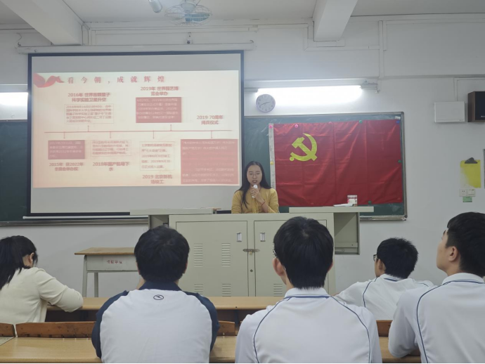 活动中,支部书记李思丽带领师生党员共同回顾了新中国成立76年来的辉煌历程。习近平总书记指出,中华民族从濒临危亡走向伟大复兴,一路筚路蓝缕、充满艰辛,也一路豪情满怀、凯歌高奏。这让全体党员深刻感受到了祖国发展的不易与伟大。