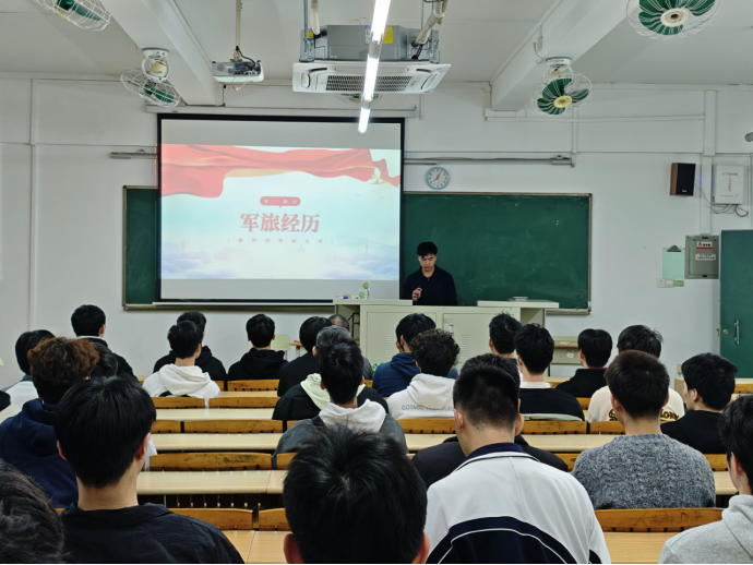 接着,退役复学的2025级林恒欣同学分享了他自己的入伍经历和军旅生活,他表示两年的军旅生活虽然失去了很多,却也得到了很多值得一辈子珍藏的经历,作为新时代的青年人,应勇于挑战自己的极限,往最远最苦最累的地方去,因为越是条件艰苦、环境恶劣之地,越能成为锤炼意志、铸就品格的“大熔炉”,让我们得以全方位地成长与蜕变。