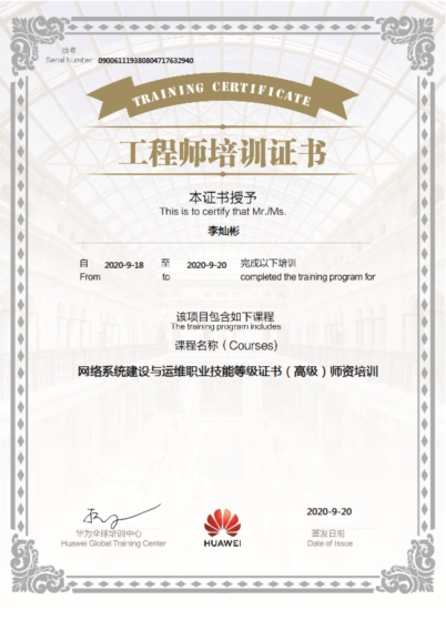 目前,华为ICT学院可以考取全系列的证书,学生通过证书种类有HCIA-Datacom、HCIP-Datacom、HCIE-Datacom、HCIA-Route&Switch、HCIP-Route&Switch、HCIA-Cloud Computing、HCIP-Cloud Computing、HCIE-Cloud Computing、HCIA-inteligent Computing、HCIA-KungPeng、HCIA-AI。目前ok138cn太阳集团529的华为ICT学院近3年来通过HCIA的学生400多人,通过HICP的学生30多人,通过HCIE的学生4人。