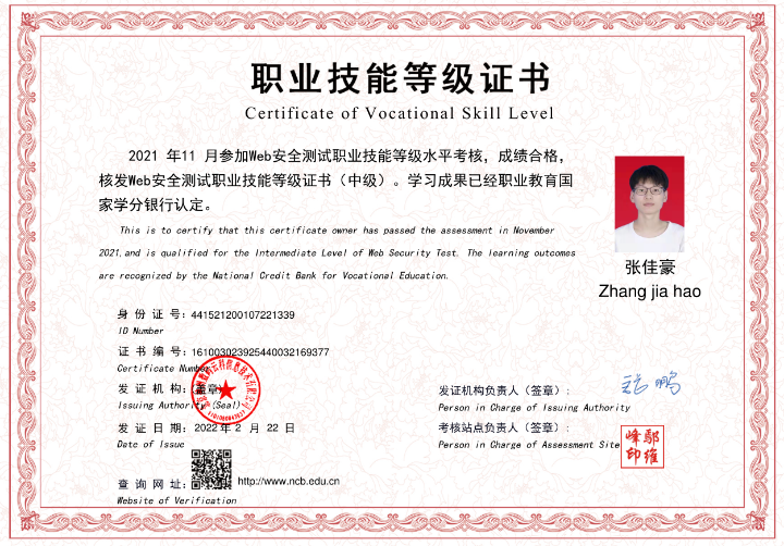 近三年来,本专业学生在华为“1+X”移动应用开发职业技能等级考证上50人参加考试、46人顺利通过,通过率为92%;在“1+X”网络系统规划与部署职业技能等级考证上100人参加考试,通过率100%;在“1+X”Web安全测试职业技能等级考证上100人参加考试,通过率100%。