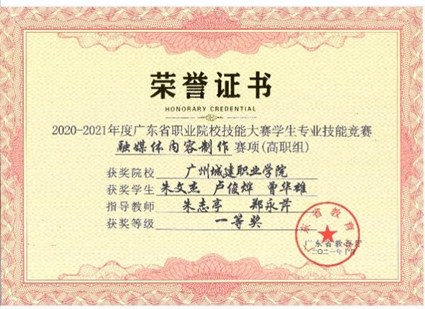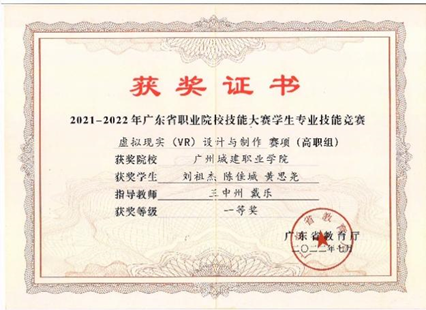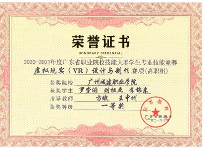 本专业曾获第八、九届中国"互联网+"大学生创新创业大赛国赛银奖和铜奖,连续三年获得广东省职业院校学生专业技能大赛“融媒体内容制作”赛项一等奖,连续四年获得“虚拟现实(VR)设计与制作”赛项一等奖和二等奖,获得全国数字艺术设计大赛一等奖和二等奖、广东省计算机设计大赛一等奖、SQL Server数据库应用技术比赛一等奖、广东高校网络媒体节比赛一等奖等多项省级以上荣誉。