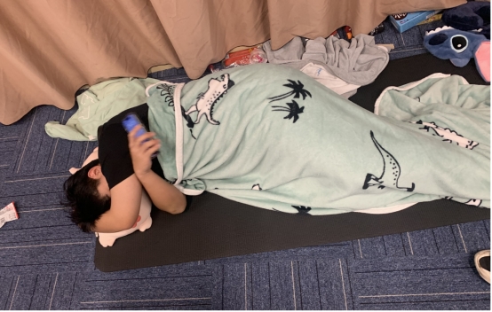成绩的背后是同学们六个多月的辛勤耕耘与不懈努力。从“校赛—集训—省赛—国赛”,为期六个多月的竞赛历程,同学们实现了从懵懂到精通,从平凡到卓越的华丽蜕变。他们克服了重重困难,牺牲了课余时间和假期,全身心投入到学习中,不断提升自己的数学建模能力和团队协作精神。9月5日至8日是比赛日,为期三天四夜的最后冲刺是同学们最深刻、最难忘的时光。在这四个夜晚,信工财经楼318数学建模实验室的灯光时刻闪亮,就如黑夜中璀璨的星辰,指引着追梦者的方向。同学们围坐在电脑前,键盘敲击声与鼠标滑动声交织成一曲紧张而充满希望的交响乐,他们反复推敲模型,优化算法,只为追求更高的精确度和实用性。窗外,夜色深沉,万籁俱寂,而在这片灯火通明的实验室里,学生们正争分夺秒地参赛,实在太困了就躺瑜伽垫上眯一眼。他们知道,每一份努力都不会白费,每一次坚持都将照亮前行的道路。