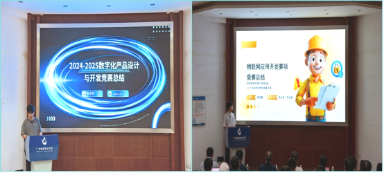 师生代表分享环节,学生代表张洛轩、张育波进行分享了他们的备赛过程,分析了遇到的难点问题,并畅谈参赛感悟。两位同学表示,此次竞赛不仅提升了专业技能,更锻炼了系统化思维能力,未来将以此次经历为动力,在专业领域持续深耕,追求卓越。