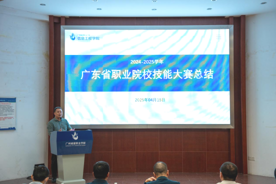 为表彰过去一年职业技能竞赛获奖师生,激发师生参赛热情,推进2025年学生竞赛工作。4月15日,学院在建工机电楼A101报告厅隆重举行2024-2025年度广东省职业院校技能大赛总结暨新一轮竞赛启动会。学校教务处领导汤锋,学院院长曹春华,党委书记、副院长刘杰,教研室正副主任及参赛师生代表参加了会议,会议由学院副院长刘君主持。