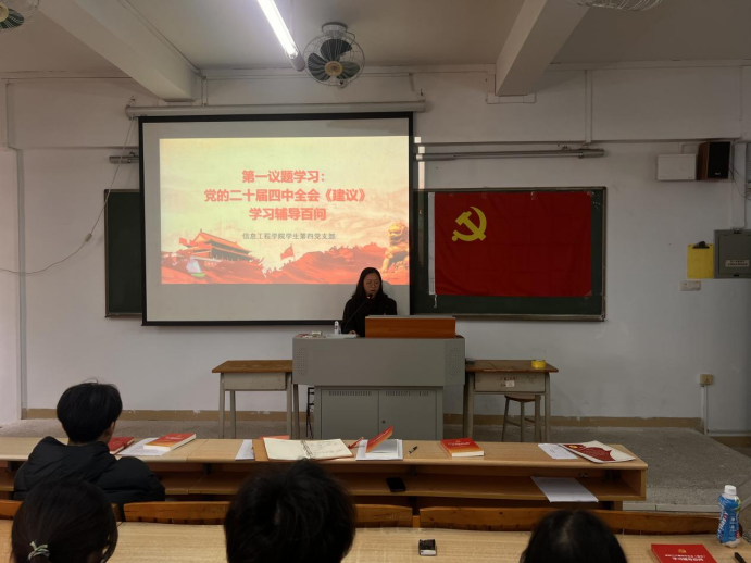 会上,林赛赛领学《党的二十届四中全会<建议>学习辅导百问》,重点围绕“如何把握‘十五五’时期我国发展面临的国际国内形势”展开专题学习。她强调,变局蕴含机遇,挑战激发斗志。理解形势是为了更好地行动,作为学生党员要将“国之大者”与“己之任者”相结合,既要仰望星空,深刻认识国家所处的历史方位和肩负的时代使命;又要脚踏实地,立足学业练就过硬本领,服务群众。