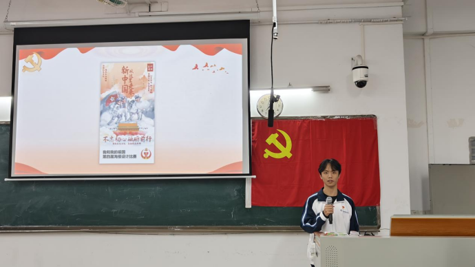 经过多轮评审,24份优秀作品脱颖而出,获得表彰。11月27日晚,第四届“我和我的祖国”主题海报设计比赛颁奖仪式在信工财经楼117课室举行。我院学生党支部书记苏碧玲、王宇翔、李思丽,以及入党积极分子、党员代表和获奖学生共同出席了仪式。