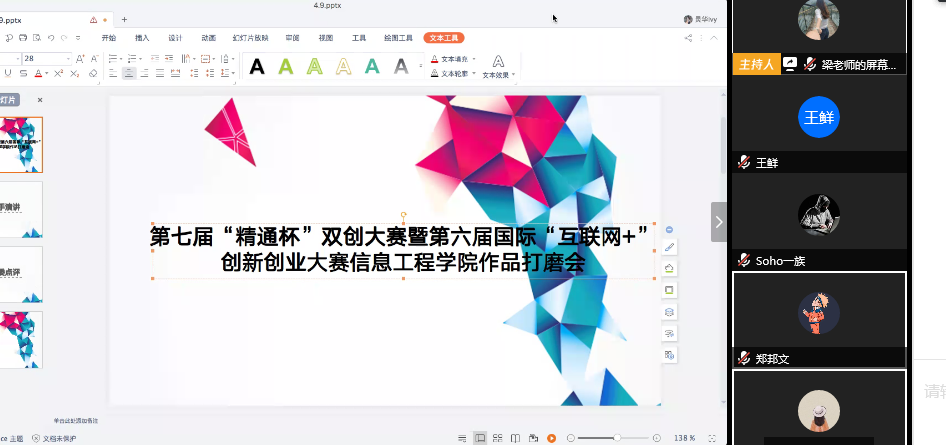 为提升我院互联网+大学生创新创业大赛项目质量,4月9日晚通过腾讯会议对我院前十二名“互联网+”创新创业项目进行打磨。本次会议特邀创业教育学院邱漠河院长担任点评嘉宾,ok138太阳集团古天乐副院长王鲜、各项目团队指导老师和学生参加,会议由学院团委书记梁土权主持。