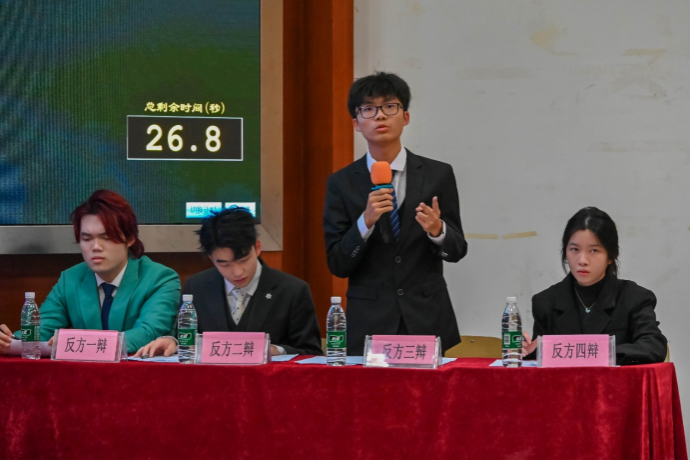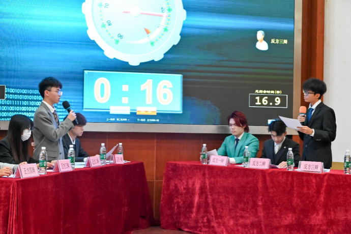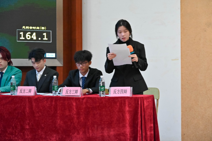 双方辩手在立论、质询、对辩、盘问、自由辩论等环节中,唇枪舌剑、你来我往,展现出极高的辩论素养与竞技水平。他们既认真倾听对方的观点,展现出尊重与包容;又勇于直面质疑,以清晰的逻辑、有力的论据和出色的口才,正面回应对方的每一个挑战。整场辩论在深度对话中层层推进,如波澜壮阔的画卷徐徐展开,引起了观众们深深的共鸣,现场不时爆发出热烈的掌声与喝彩声。