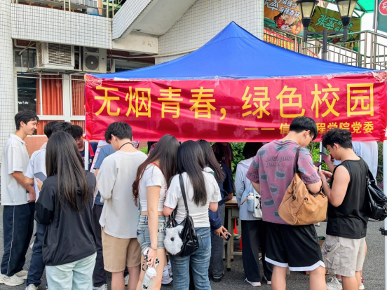 为深入学习宣传贯彻党的二十届三中全会精神,进一步加强健康教育与引导,营造和谐、文明、有序的校园环境,我院党委于4月28日至29日在学校二区饭堂小广场举办了以“无烟青春,绿色校园”为主题的系列活动。此次活动通过禁烟知识问答、撰写禁烟标语等形式,引导师生深刻领会吸烟的危害,共同抵制烟草诱惑,守护青春健康。