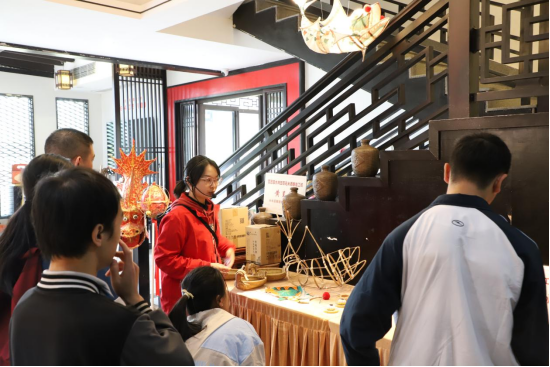 工匠小镇,不仅拥有独特的自然风光,还拥有丰富的历史文化遗产,通过参观工匠小镇,同学们可以更深入地了解工匠文化,感悟工匠精神。活动现场,讲解员首先带领大家参观工匠小镇里的展馆,介绍了工匠小镇的发展历程、特色文化以及传统工艺,引领同学们感受工匠精神的魅力。随后,大家来到百匠园草编工坊,里面的陶瓷醒狮、“鲤鱼舞”表演道具、古琴、烙画、以及木雕工艺品等充分展现了中国传统工艺的无穷魅力和工匠们的精湛技艺,吸引了所有人的目光。