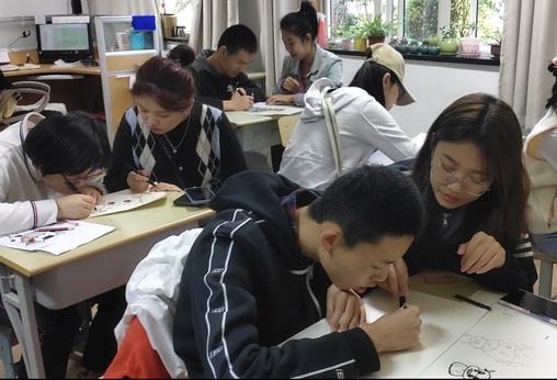 东华大学“牵手艺术彩虹”志愿服务队学生志愿者教孩子绘画