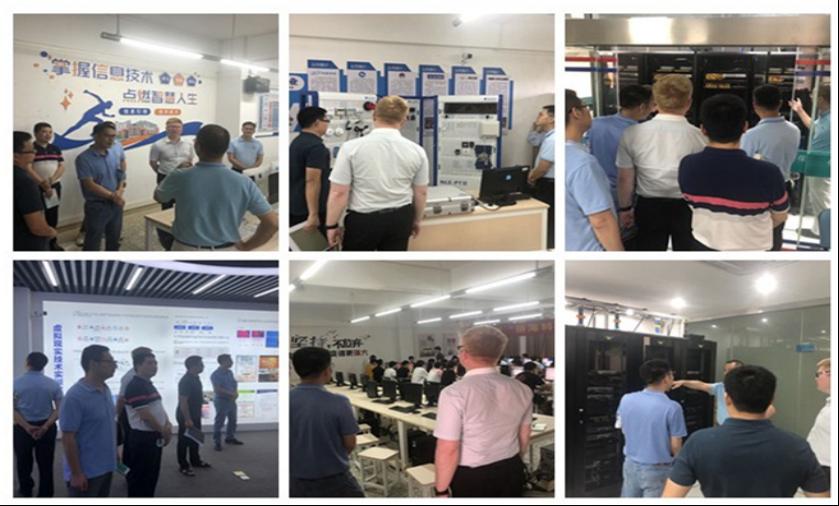 首先,曹春华陪同关树基一行参观了华为ICT综合实训室、曙光大数据中心、虚拟现实(VR)实训室等专业实训室。