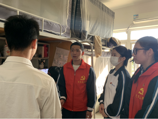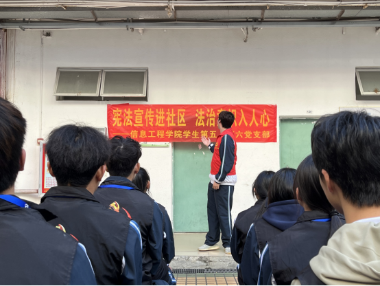 紧接着,党员同志分为若干小组,进入学生宿舍进行宪法知识宣传。他们结合习近平法治思想,通过现场讲解、问答等方式,利用通俗易懂的言语向同学们普及宪法知识,引导大家树立宪法意识,维护宪法权威。
