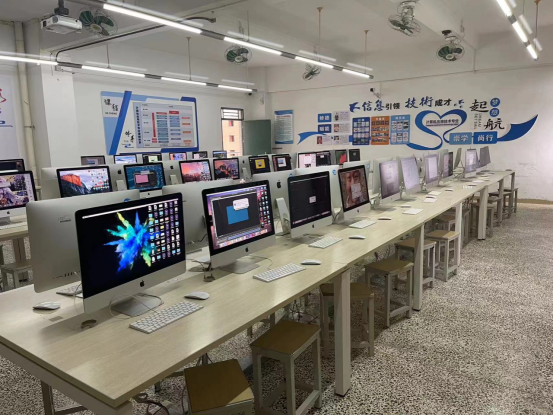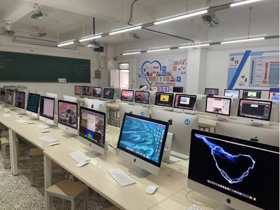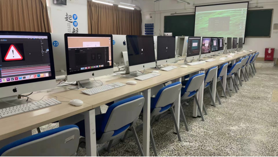 数字媒体实训室是一个培养学生多媒体产品策划和设计能力的实践教学场所,设有58个工位,配置了苹果一体机(I5/8G/1T/2G/21.5英寸LED显示),总价值达80万元,能够流畅运行各类设计软件,如Premiere、Photoshop、 Illustrator、Cinema 4D,以及原型制作工具,如Axure、墨刀等,涵盖了多媒体产品策划、交互设计、视觉设计等多个方面。能够支持学生从多媒体产品构思到原型制作再到最终设计的全流程操作,掌握交互设计、视觉设计等关键技能,开展界面设计、图标制作、动画效果添加等工作,将多媒体产品策划方案转化为具有吸引力的视觉呈现,帮助学生更好地掌握多媒体产品策划与设计的核心技能。