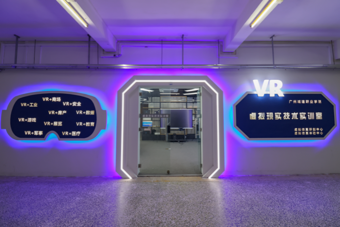 虚拟现实技术展示厅集VR展示体验区和创新工作区于一体,既是实践教学场所又是虚拟现实技术开发工作室,设有22个工作,配置了高性能图形工作站(I7-10700/32G/1T+512G SSD/6G独显)、VR交互头显设备4套、VR交互头显设备(含VR资源)2套、MR交互套件1套、LED大屏展示系统1台、虚拟现实工程技术实训系统1套,总价值达50多万元。实验室全方位支持虚拟现实(VR)项目的开发实战,涵盖从初步构思到最终实现的整个过程。也能有效应用于社会服务项目的研发工作,以及职业技能竞赛的集训活动,为各类项目提供坚实的技术支持和实践平台。