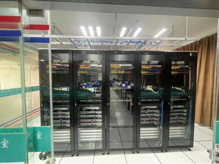 网络综合实训室不仅可以为校内的学生提供基础性的验证实验,同时也可以为教师或其他IT人员提供研究性或设计性的实验环境,该实训室除了保证基本的路由交换实验功能外,同时还分配了各种高级网络功能,确保学生可接触更多的实验。实训室投资500余万元建成,设有工位57个,配备联想M428 I7-8700/16G/1T SATA/双网卡/19.5英寸电脑、信息安全出口网关/锐捷RG-EG3210/12台、路由器/锐捷RSR10-X-SER1ES/12台、三层交换机/锐捷RG-S5310-24GT4XS/15台、二层交换机/锐捷RG-S2910-24GT4XS-E/11台、无线控制器/锐捷RG-WS6008/6台、无线接入器/锐捷RG-AP840-I/11台、SDN控制器/锐捷RG-ONC/1台、堡垒服务器/神州数码/DCNDCST-6000B/3台、无线AP/神州数码/WL8200-I1、无线控制器/神州数码/DCWS-6028-Pro、web应用防火墙/神州数码/DCFW-1800-WAF-P、上网行为日志系统/神州数码/DCBC-NetLog、防火墙/神州数码/DCFW-1800E等高级网络设备,部署了8套锐捷网络教学设备,授课课程包括《网络建设与部署》、《Linux系统实务》、《路由交换技术》、《入侵检测与防火墙技术》等网络骨干课程实训,作为网络系统管理竞赛团队集训基地,在2019-2023年期间连续5年斩获广东省职业院校技能大赛“网络系统管理”赛项一等奖。