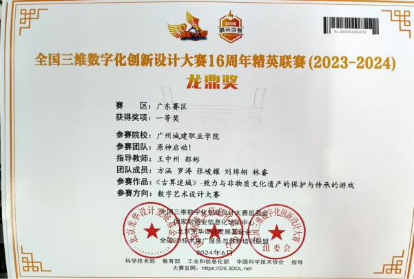 在综合素质提升方面,罗涛同学积极参与各类专业竞赛与技能挑战,荣获“全国三维数字化创新设计大赛16周年精英联赛龙鼎奖”省级一等奖、广东省大学生计算机设计大赛省级三等奖,展现出突出的创新能力与专业应用能力。此外,他在早期参加校内职业技能大赛选拔赛中获得三等奖,体现了良好的技术基础和实践能力。
