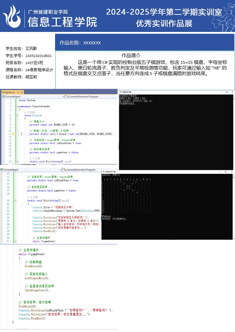 上一篇:ok138太阳集团古天乐2024-2025学年第二学期实训室优秀实训作品展(2417 软件实习工场(一))