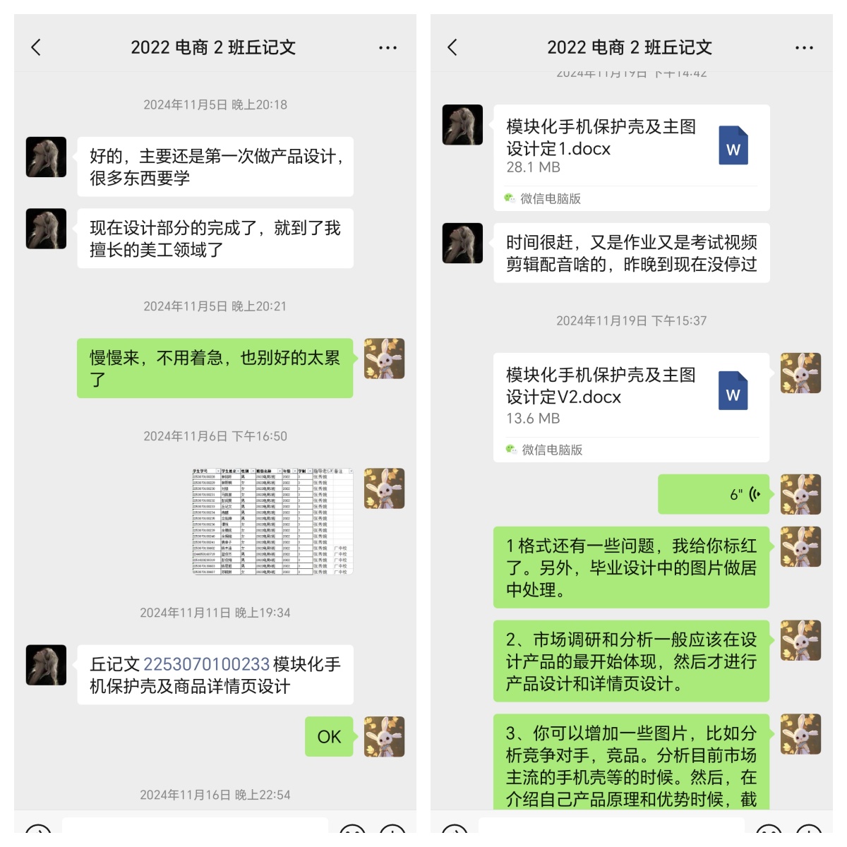 张秀婉老师指导的22级电子商务2班丘记文同学的作品《模块化手机保护壳及商品详情页设计》和林熙桐同学的作品《喜茶欣荣分店高校学生群体消费者分析报告》被评为优秀综合实践项目。两位同学在各环节中表现整体优异、态度认真负责,能快速领悟修改意见,及时对实践报告进一步打磨优化。在设计与撰写中体现出扎实的专业素质,以及对电商理念的深刻理解与体会。