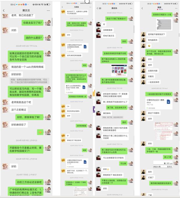 陈志强老师的项目经历了动员、选题、开题、撰写及答辩评阅一系列环节,针对计算机应技术专业的特点,项目选题根据专业培养目标,结合生产实践和社会对学生的就业要求,选择了5个具有一定综合性和创新性的题目。教师是学生前进路上的指路明灯,要以爱为本,以德育人。在整个项目环节中,该教师始终保持高度热忱,认真落实项目各环节工作。利用线上线下等方式进行指导,对学生的实践报告细致化批改,热情鼓励、耐心帮助,并且在项目中注重培养学生的创新思维和实践能力,为学生的未来发展奠定坚实基础。